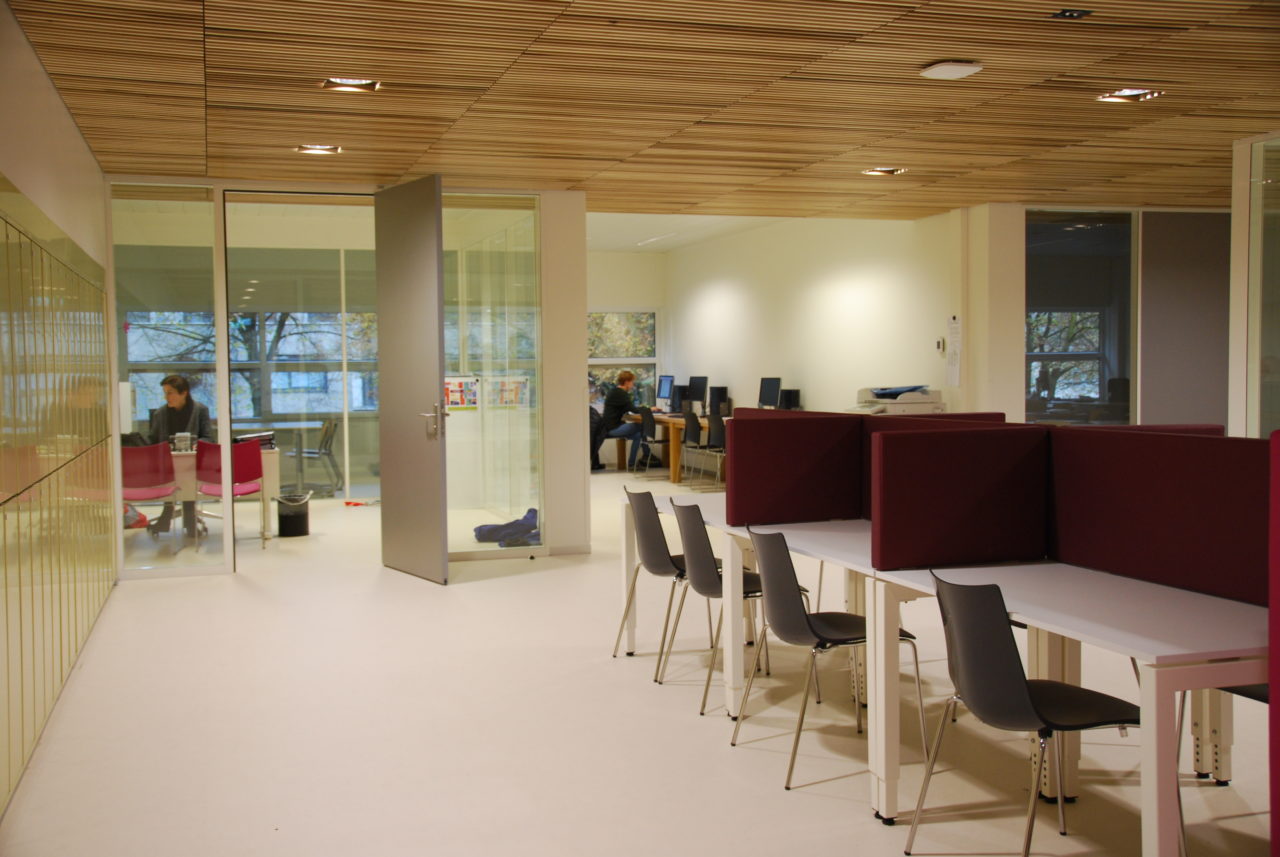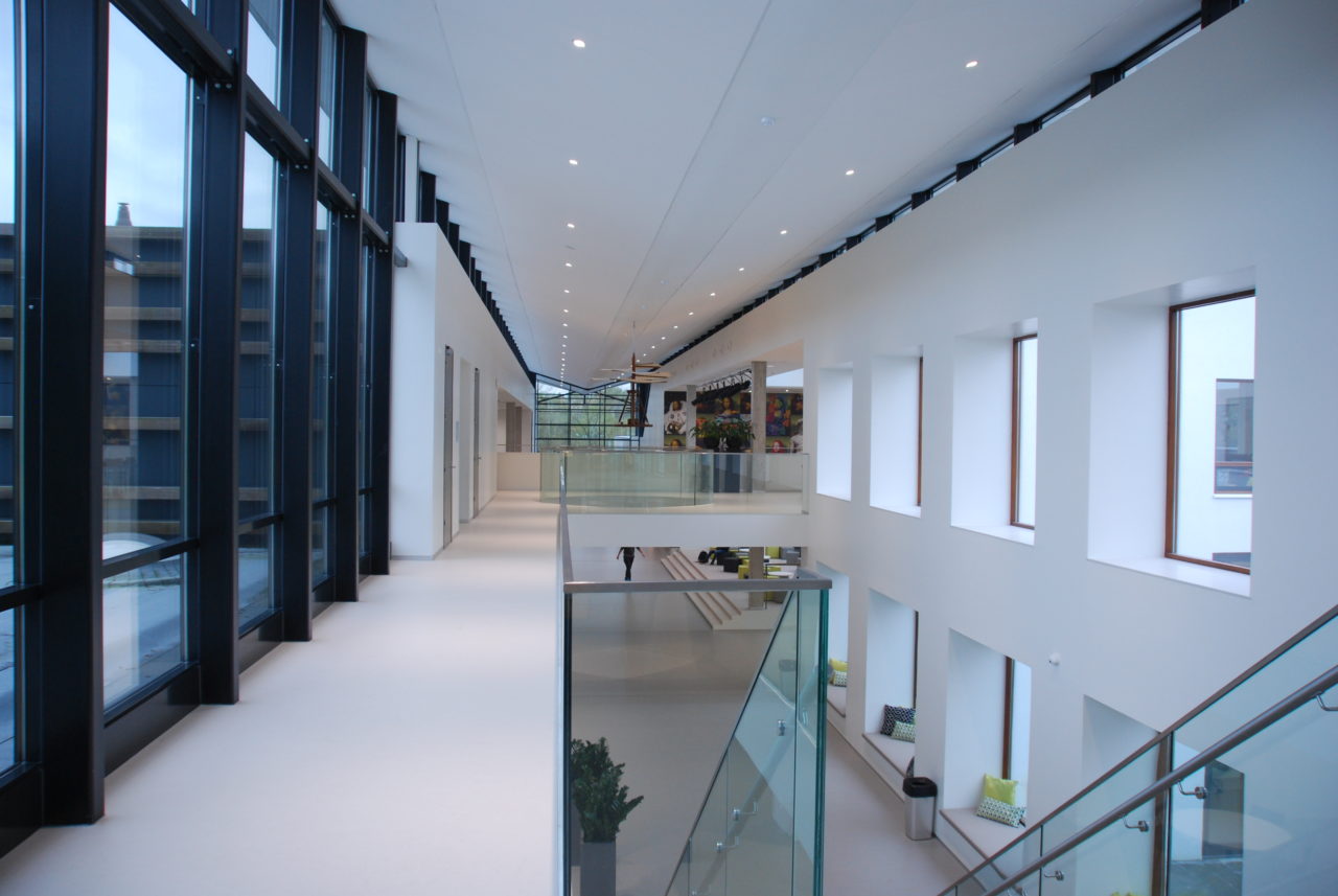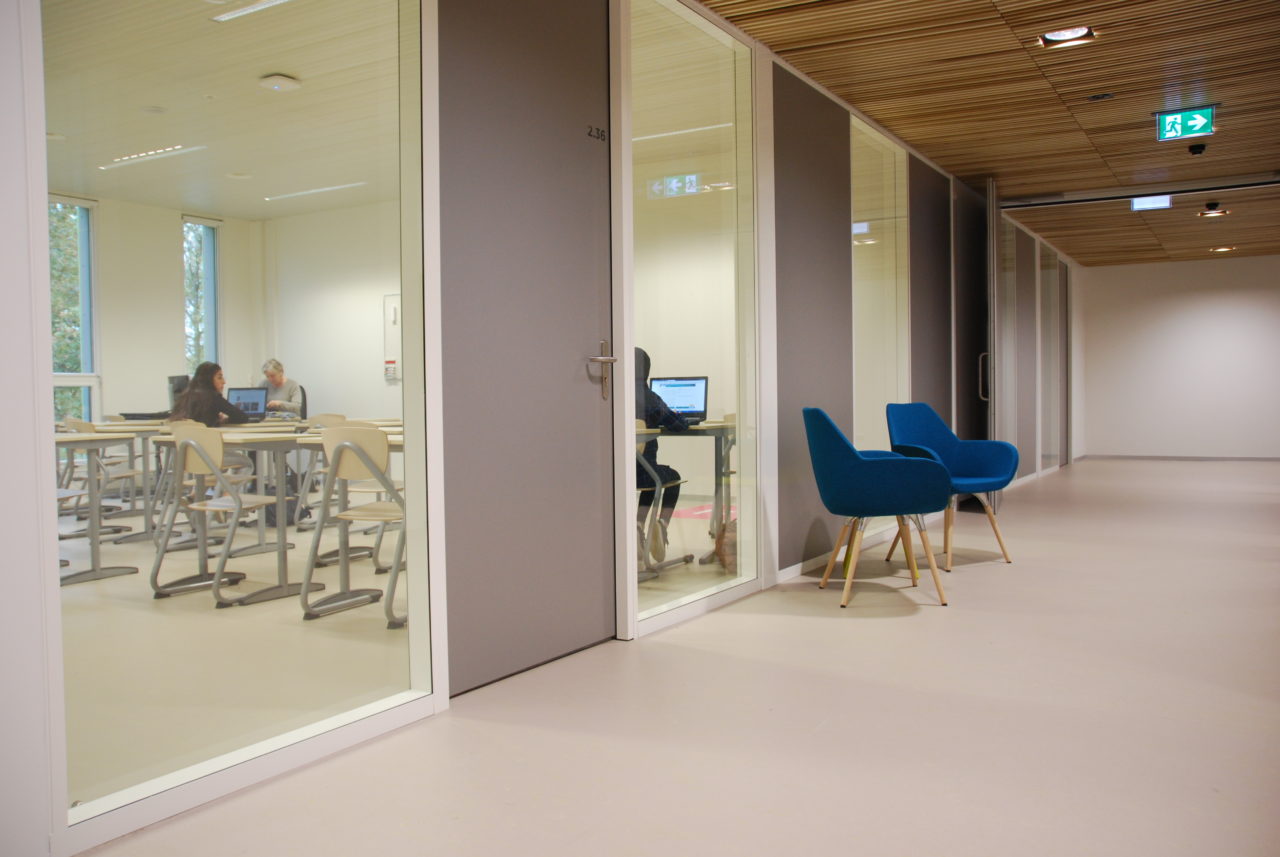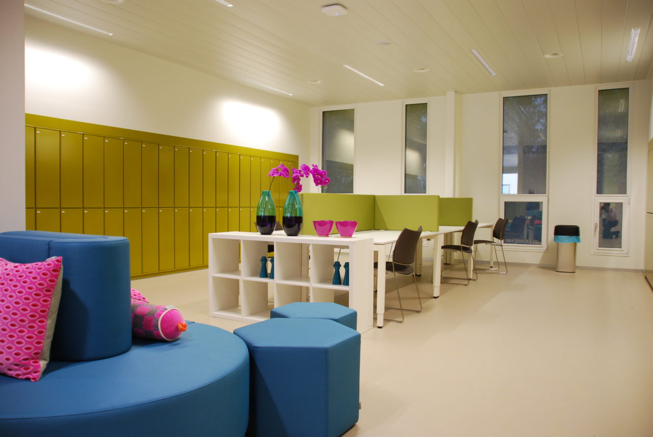 In het gebouw is een vernieuwende VMBO-omgeving gerealiseerd waar theorie en praktijk zijn geïntegreerd.