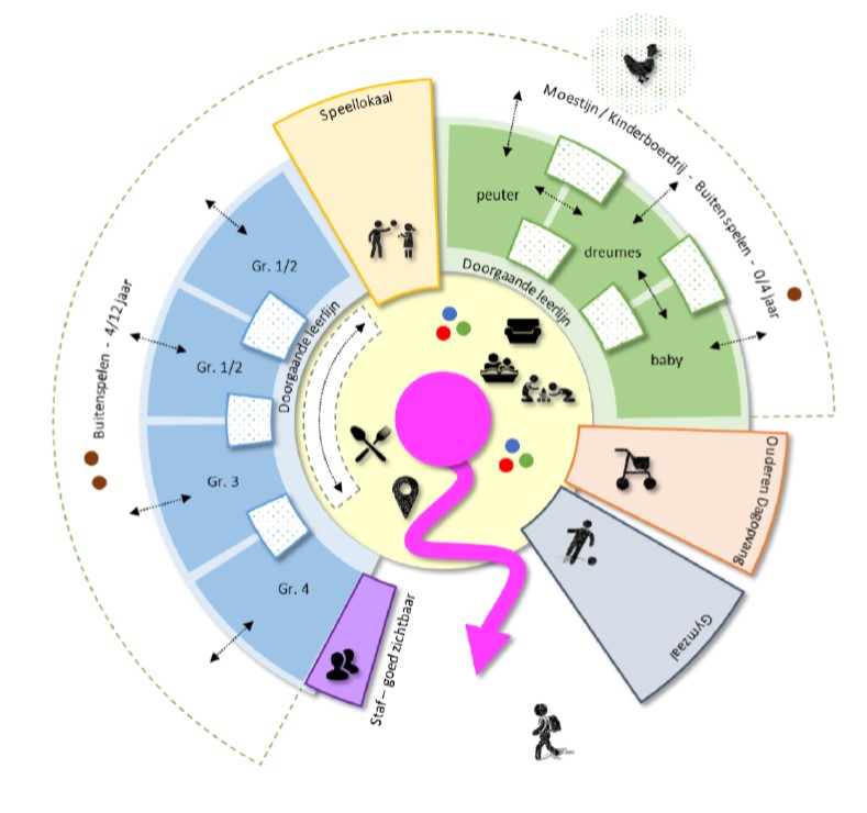 De beide teams (onderwijs en opvang) hebben via de ‘Waar-leer-jij’-methode nagedacht over hun ambitie en hoe deze er ruimtelijk uit zou zien. Deze ambitie is vertaald naar een Programma van Eisen op hoofdlijnen.