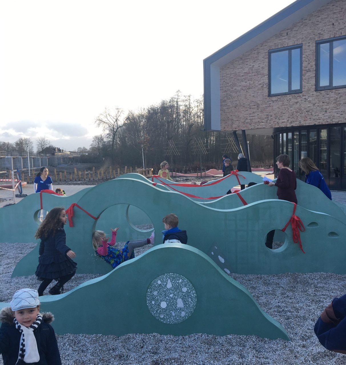 De archeologie die de plek kenmerkt wordt ook weerspiegeld in het kunstwerk op het speelterrein. De golven verwijzen naar de vroegere loop van de Rijn, de noordelijke grens van het Romeinse rijk.
